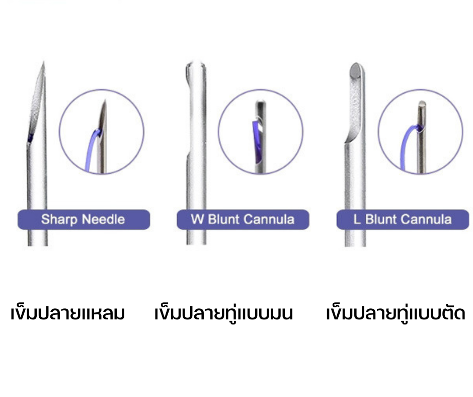 III. เข็มที่มีสีฟ้า 23G : ใช้สำหรับการร้อยไหมที่มีขนาด USP 3-0
